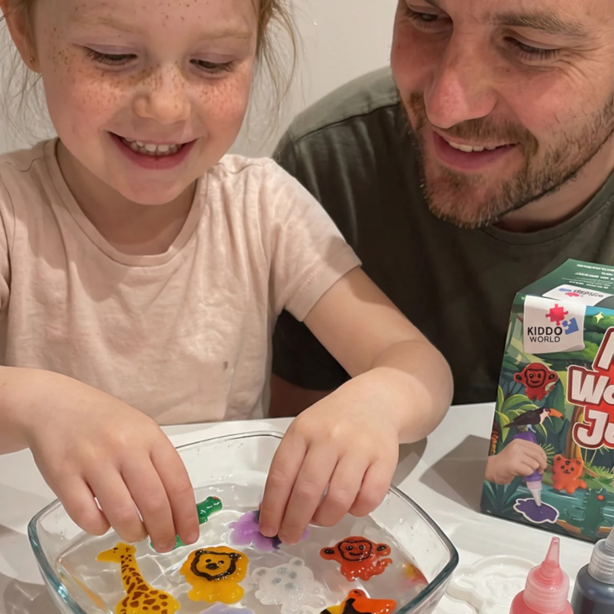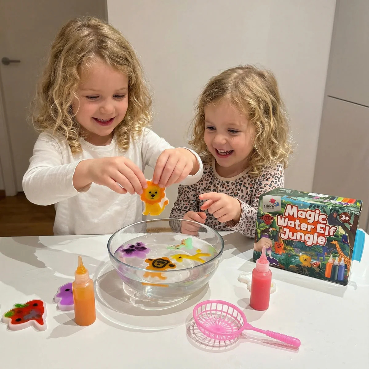 ✔ Kreatívny set s vodnými škriatkami, trblietavými gélmi a formičkami zvierat z džungle – deti sledujú kúzelné zmeny farieb a textúr