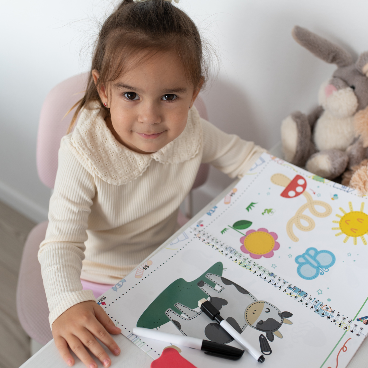 Dokonalé pre deti, ktoré sa učia písať! Kúpila som zošit mojej 2-ročnej dcérke, ktorá už po niekoľkých dňoch začala sledovať čiary a kresliť písmená. Zošit sa ľahko používa, je farebný a ponúka mnoho úloh na precvičovanie, ktoré ju udržiavajú motivovanú. Najradšej sleduje vzory a už spája písmená s vecami z okolia. Teraz sa s radosťou učí!