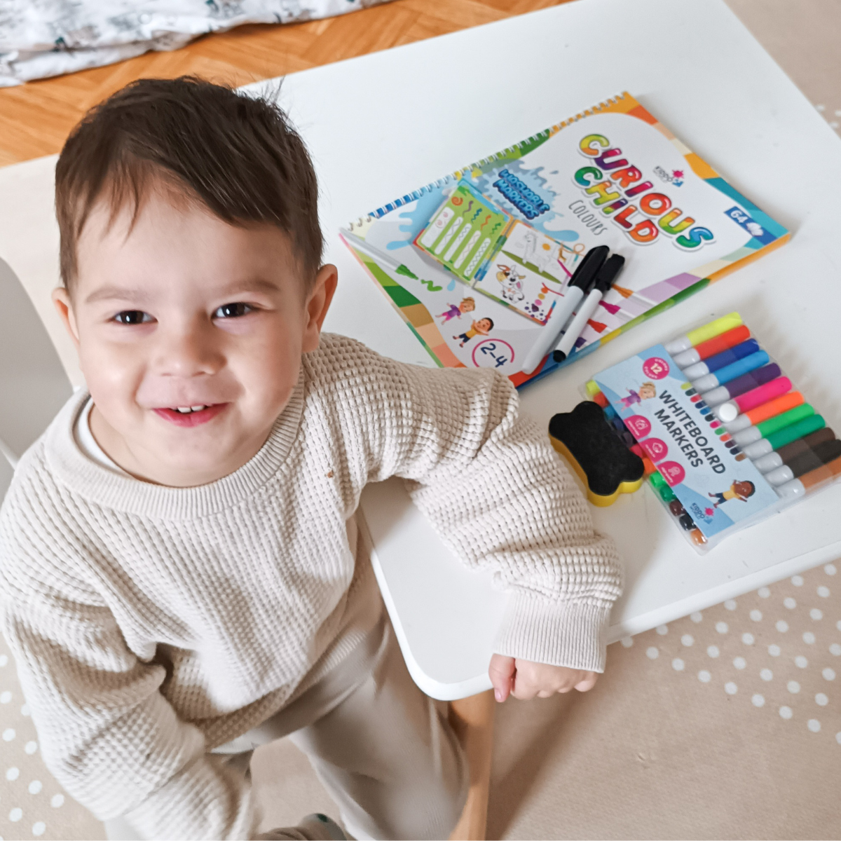 Vedeli ste, že rozpoznávanie a pomenovanie farieb až 3x urýchľuje vývoj reči? 🧠 Zošit Curious Child Colours hravým a interaktívnym spôsobom podporuje kognitívny vývoj, pisárske zručnosti a jemné motorické schopnosti. Deti prostredníctvom cvičení na sledovanie čiar aktívne spájajú obrázky, pojmy a slová, rozpoznávajú a pomenúvajú farby a obohacujú svoju slovnú zásobu a schopnosť vyjadrovania. Priložené sú dve fixky a špongia pre neobmedzené precvičovanie a opakovanie!
